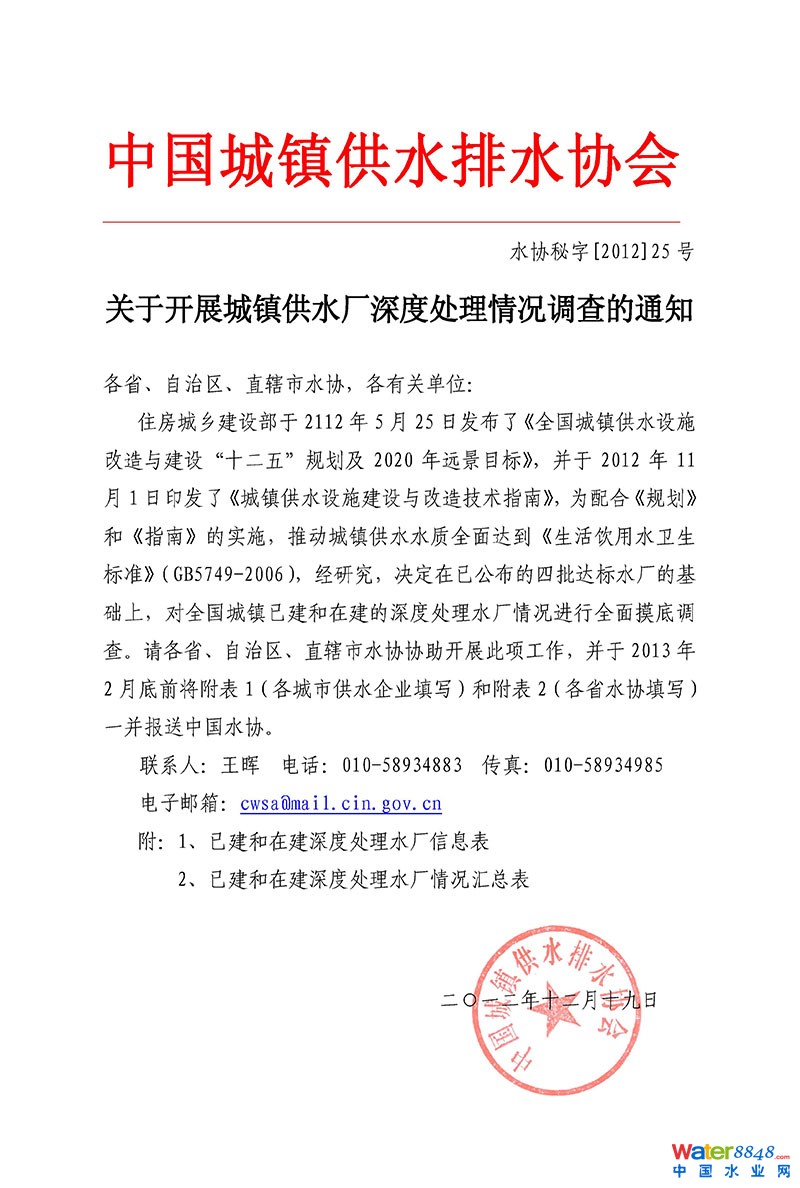 | 關(guān)于開(kāi)展城鎮(zhèn)供水廠深度處理情況調(diào)查的通知 |