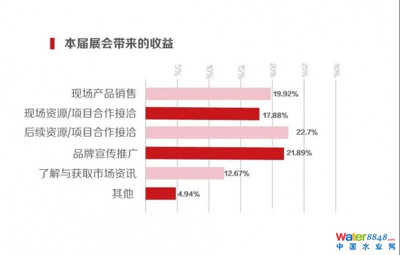 展會上給展商朋友們帶來了更多的現(xiàn)場資源對接,其中現(xiàn)場產(chǎn)品銷售為19.92%、現(xiàn)場資源項目接洽為17.88%;后續(xù)潛在的資源/項目合作接洽的效果較為明顯,占比達到22.7%;企業(yè)品牌宣傳推廣的比例也達到了21.89%。0.39%位居第二。