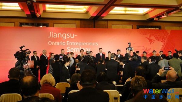 我院4名代表赴南京參加江蘇-安大略省企業(yè)家洽談會(huì)。安大略省代表團(tuán)由省長麥堅(jiān)迪親自率隊(duì),加拿大安大略省38家農(nóng)業(yè)食品、綠色建筑、水處理領(lǐng)域龍頭企業(yè)訪問江蘇,我省有500家企業(yè)和科研院所代表參加了此次洽談會(huì),我院與Echologics公司、Ecolo異味控制技術(shù)公司、弗萊明另類污水處理中心、多倫多大學(xué)等大家大型國際公司與院校進(jìn)行了深入的交流和討論。