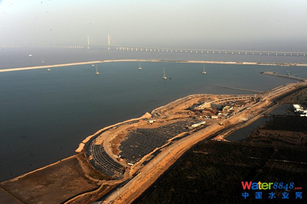 青草沙水庫位于自然條件復(fù)雜的長江口南北港分流口區(qū)域,為目前國內(nèi)外沿海最大的河口避咸蓄淡水庫,水庫總面積66.15km2,設(shè)計總庫容5.24億m3,供水規(guī)模719萬m3/天,工程總投資約60億。于2011年6月建成,水庫采用水泵提升和水閘自流引水相結(jié)合方式,在長江口咸潮期最長連續(xù)不宜取水68天的情況下仍可正常為上海市供水。