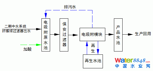 設(shè)計水源:公司水廠回用水工程出水或城市污水處理廠二級處理出水(GB18918-2002一級標準);