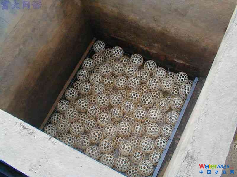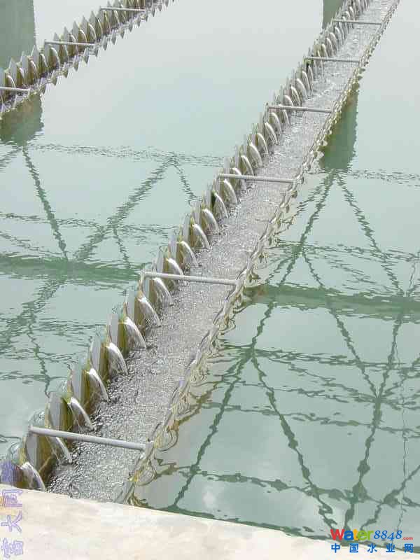 (2)產(chǎn)水量提高后,原絮凝池前2-3格易發(fā)生溢水,將部分池體加高0.5m;沉淀池只對其出水渠擴大淹沒孔口;濾池基本不動;然后絮凝池內(nèi)投入按水廠設(shè)計規(guī)模計算好開孔比的渦流絮凝器。