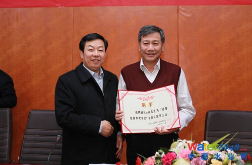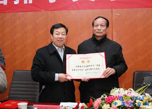 與會(huì)領(lǐng)導(dǎo)為“進(jìn)強(qiáng)給排水獎(jiǎng)學(xué)金”第一屆委員會(huì)委員頒發(fā)了聘書(shū)。師生代表也在會(huì)上作了表態(tài)發(fā)言。