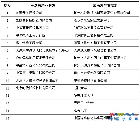 附:國家海水淡化產(chǎn)業(yè)聯(lián)盟首批成員單位名單
