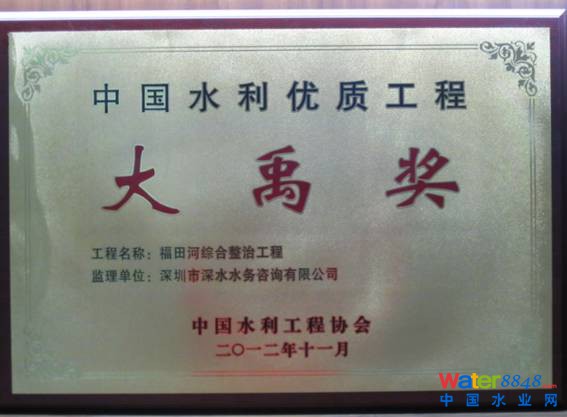 福田河綜合整治工程項目榮獲“2011~2012年度 中國水利工程優(yōu)質(zhì)(大禹)獎”