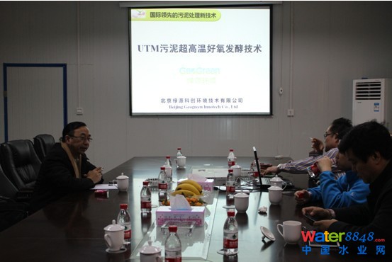 在隨后召開的技術(shù)研討會(huì)上,我公司項(xiàng)目經(jīng)理劉進(jìn)豐向戴曉虎匯報(bào)了公司的科研成果、“UTM超高溫好氧發(fā)酵技術(shù)”的技術(shù)特點(diǎn)和優(yōu)勢(shì)及污泥產(chǎn)品的資源化利用。