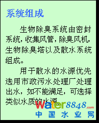 從以上的反應所示,惡臭成分會分解成二氧化碳、水和硫酸等物質,散水能沖掉這些酸性物質,并得以保持適當的微生物生長環(huán)境