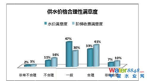 自 2011 年底開始,全國范圍內多個城市上調了水價,或實施階梯水價的收費方式,引起公眾的廣泛關注及爭議。但隨著業(yè)內媒體持續(xù)引導和幫助公眾建立對供水行業(yè)的理性認知,使公眾對水資源作為商品的意識越來越強,對供水服務成本業(yè)開始有所了解,因此漲價、改變收費方式并未對供水水價的滿意度造成太大影響。
