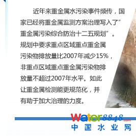核心提示:哈希HMA系列 重金屬在線分析儀家族系列產(chǎn)品耀世登場(chǎng) “2011年7月,阿壩州一電解錳廠的含錳廢渣被泥石流沖入涪江,造成嚴(yán)重污染事故,對(duì)沿岸城市飲水安全構(gòu)成嚴(yán)重影響和威脅。 “2012 花都巴江河鎳指數(shù)超標(biāo),對(duì)下游居民用水安全首當(dāng)其沖,沿岸相關(guān)污染企業(yè)全數(shù)停整……” 近年來,重金屬水污染事件頻發(fā)。我國(guó)重金屬污染的現(xiàn)狀令人堪憂,對(duì)周邊生態(tài)環(huán)境的影響范圍之廣、對(duì)民眾生命健康的危害之大,更是令人觸目驚心。重金屬污染對(duì)人體的危害主要是“三致”,致癌、致疾、致突變,途徑一般是通過生物鏈和生
