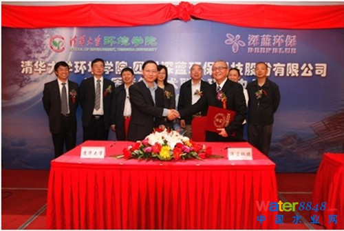 清華大學(xué)科研院院長(zhǎng)王治強(qiáng)、環(huán)境學(xué)院院長(zhǎng)余剛及郝吉明院士在開(kāi)幕儀式上致辭,中心主任王偉教授、四川深藍(lán)環(huán)?萍脊煞萦邢薰径麻L(zhǎng)謝非對(duì)中心籌備成立的背景、雙方合作基礎(chǔ)、中心研究方向以及預(yù)期目標(biāo)作了詳細(xì)介紹。余剛院長(zhǎng)和謝非董事長(zhǎng)分別代表合作雙方在合作協(xié)議書(shū)上簽字。