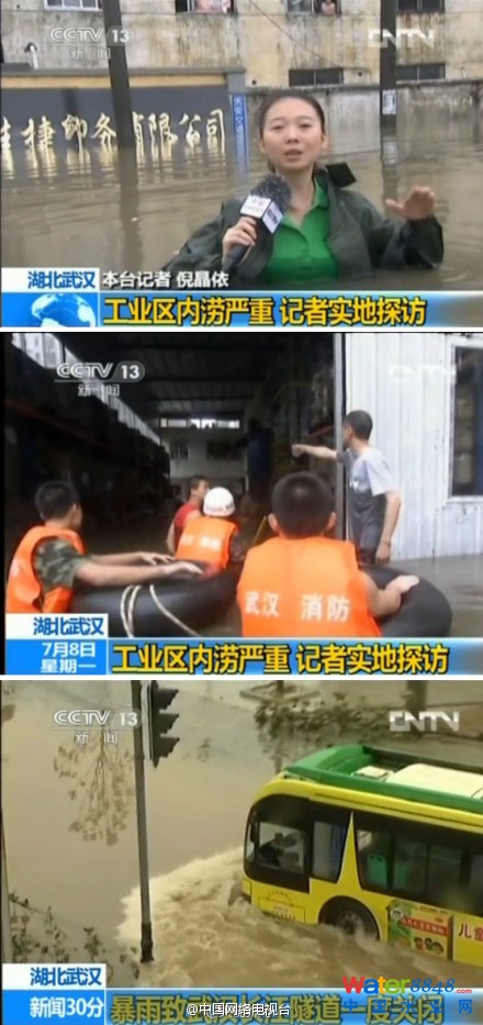 【央視記者體驗(yàn)武漢積水:水淹到胸口】昨天凌晨,武漢迎來(lái)新中國(guó)成立后最強(qiáng)一輪暴雨,積水嚴(yán)重。身高165cm的央視記者踮著腳走進(jìn)武漢某工業(yè)園區(qū)內(nèi),水已經(jīng)到達(dá)胸口。不少員工跑到二樓窗口邊等待救援。武漢理工大學(xué)的學(xué)生被困宿舍,有的轉(zhuǎn)移到樓上,有的索性躲在床上。