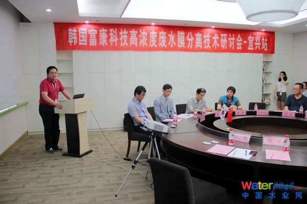 為了更好地幫助我市環(huán)保企業(yè)提高高濃度廢水處理能力,超越現(xiàn)有膜分離技術局限,同時實現(xiàn)企業(yè)經(jīng)濟利益的進一步提高,7月10日下午,江蘇。ㄒ伺d)環(huán)保產(chǎn)業(yè)研究院聯(lián)合韓國富康科技有限公司舉辦的“新一代高濃度廢水膜分離技術研討會”在研究院六樓會議室舉行。韓國富康科技有限公司膜研究所所長金樟圭、項目主管李龍、研究院執(zhí)行副院長徐榮攜全體工作人員出席了會議。百納、藍星、江華、瑞盛、博大、鼎澤、中冶冶化及無錫國聯(lián)等十二家環(huán)保企業(yè)的相關負責人也參加了研討會。