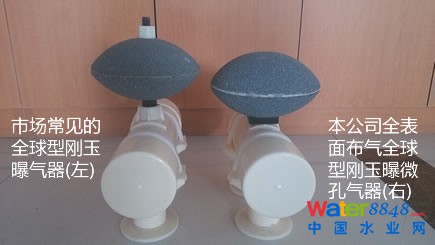 ●由于球型剛玉曝氣器頂端無連接固定孔,這樣大大增加了曝氣器有效面積,從而提高了曝氣器充氧效率。