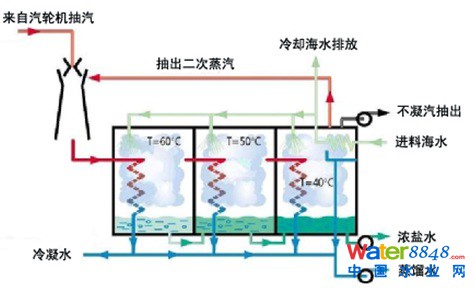 實際上,多級閃蒸、多效蒸餾和壓汽蒸餾等蒸餾工藝從宏觀上講也有類似的海水進料過程,但目前,以上三種工藝在國內(nèi)應用的很少,尤其是多效蒸餾和壓汽蒸餾,一般只適用于船用或海島用,規(guī)模相對較小。