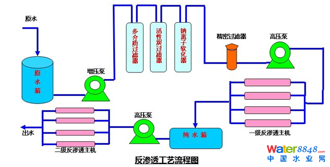 常見反滲透的工藝流程如下圖所示: