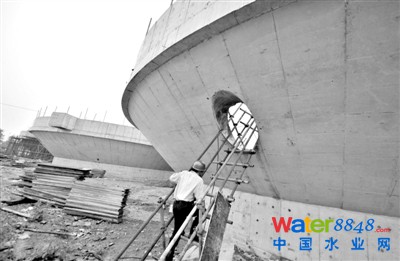 昨日,郭公莊水廠,機械加速澄清池正在施工。記者 薛珺 攝