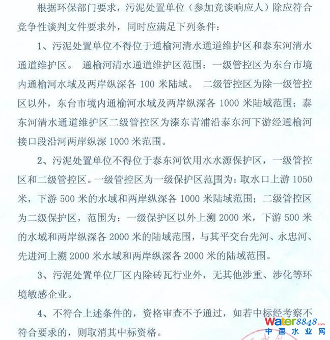 核心提示:江蘇東臺市污水處理有限公司污泥處置服務項目招標公告