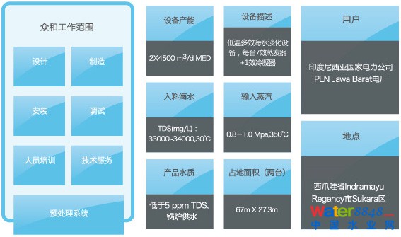 項(xiàng)目概況:2X315MW燃煤電廠位于印度尼西亞東爪哇地區(qū)南岸,離巴齊丹(Pacitan)往東約30Km。為促進(jìn)當(dāng)?shù)胤e極發(fā)展,解決用電問題,2007年新建巴齊丹2X315MW燃煤電廠,由于該地區(qū)嚴(yán)重缺水,電廠建設(shè)運(yùn)行所需用水均來自于眾和提供的2X3000m3/dMED海水淡化設(shè)備。