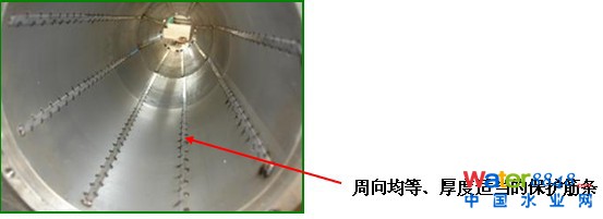 1.6.4.在轉(zhuǎn)鼓內(nèi)表面按周向等分地裝焊厚度適當(dāng)?shù)慕顥l,筋條的存在使得在轉(zhuǎn)鼓與螺旋間的物料不會沿轉(zhuǎn)鼓周向滑動。提高螺旋輸送器的推料效率(見下圖)。