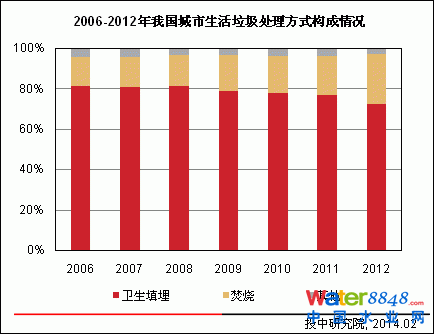 圖11 2006-2012年我國城市生活垃圾處理方式構(gòu)成情況