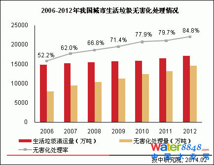 圖10 2006-2012年我國城市生活垃圾無害化處理情況