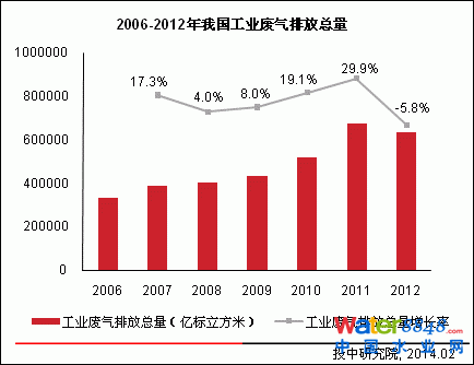 圖7 2006-2012年我國工業(yè)廢氣排放總量
