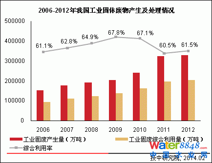 圖12 2006-2012年我國工業(yè)固體廢物產(chǎn)生及處理情況