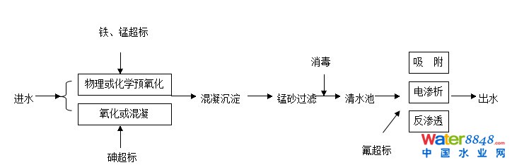 3)深度處理工藝(適合于原水水質為劣Ⅲ類或以下的地表水)