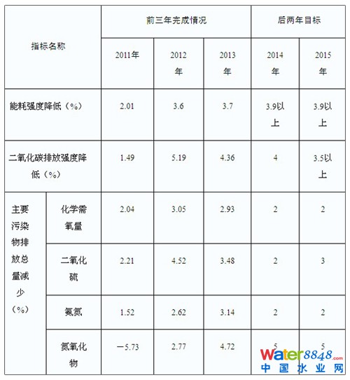 “十二五”節(jié)能減排約束性指標前三年完成情況和后兩年目標
