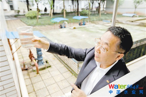 6月4日,重慶川儀環(huán)保污水處理區(qū),工作人員向記者展示通過三維結(jié)構(gòu)生物轉(zhuǎn)盤處理過的工業(yè)用水。記者 梅垠 實(shí)習(xí)生 董郝成澤 攝