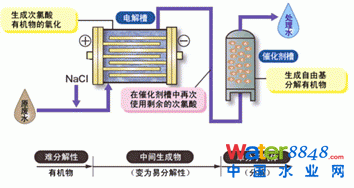 通過電解槽和催化劑槽的 2個階段的處理來處理難分解性物質(zhì)。