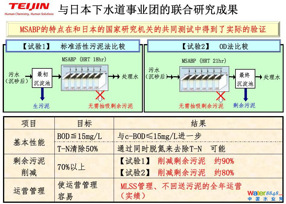 帝人(沈陽)環(huán)保科技有限公司將在中國國內(nèi)給客戶提供水處理相關(guān)的咨詢業(yè)務(wù)和綜合性解決方案,這些解決方案將采用先進(jìn)的具有減少污泥、縮短工期、節(jié)約管線工程費(fèi)用、運(yùn)行管理極其簡單等諸多特點(diǎn)的多段式生物處理裝置-“MSABP”(*)等水處理裝置。