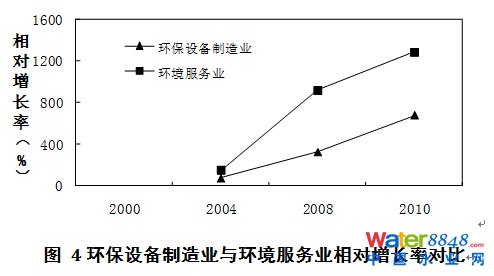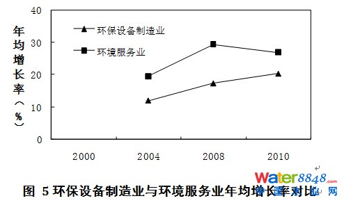 2.環(huán)境服務業(yè)年均增長率是環(huán)保設備制造業(yè)的1.3倍