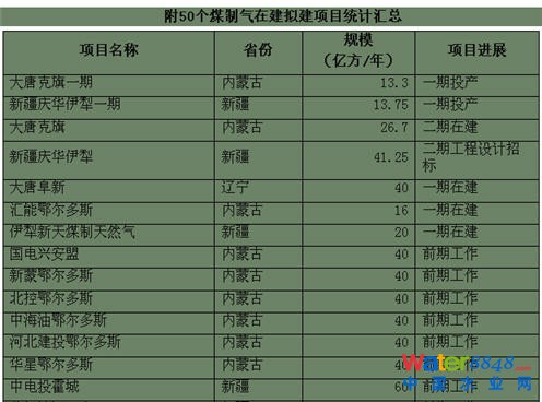 經(jīng)統(tǒng)計,全國目前共有不同階段煤制氣項目50個,其中實際建設(shè)中項目5個(部分產(chǎn)能已投產(chǎn)),正在做前期工作的項目16個,計劃中的項目18個,另有2013年以來新簽約的11個項目。