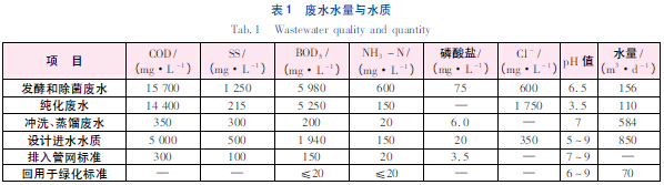 安徽省合肥市某生物醫(yī)藥公司廢水處理工程分二期建設(shè),廢水處理量一期為400 m3/d,二期為450m3/d。直排出水水質(zhì)執(zhí)行合肥生命科技園區(qū)內(nèi)核定的納管標(biāo)準(zhǔn)。回用水的水質(zhì)需達(dá)到《城市污水再生利用城市雜用水水質(zhì)》(GB/T 18920—2002) 標(biāo)準(zhǔn)。