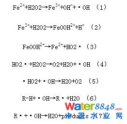 由圖4 可以看出,相比較而言,無論對(duì)COD 還是對(duì)NH3-N 的去除,電/Fenton 都具有明顯的優(yōu)勢(shì)。一般認(rèn)為Fenton 反應(yīng)的機(jī)理[7-8]主要如下: