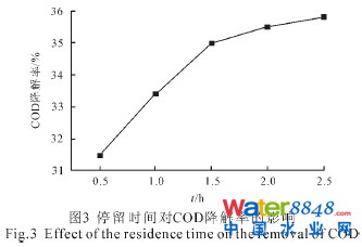 2.2 廢水停留時(shí)間對(duì)微電解的影響