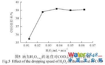 2.4 滴加H2O2(aq)的速度(量)對(duì)COD去除率的影響