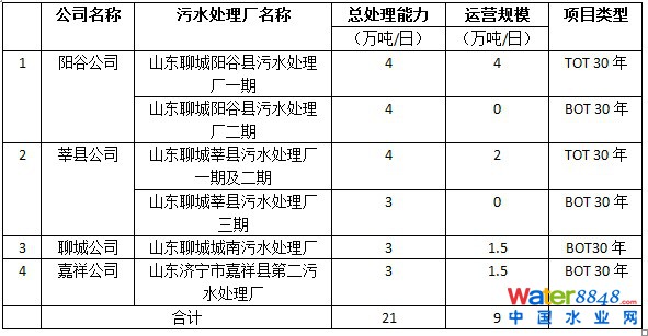 據(jù)了解,此次收購的4家污水處理公司包括陽谷公司、莘縣公司、聊城公司及嘉祥公司。該4家污水處理公司擁有污水處理廠的特許經(jīng)營權(quán),污水處理總規(guī)模為21萬噸/日,其中運營項目9萬噸/日,在建項目5萬噸/日,籌建項目7萬噸/日。預(yù)計在建項目將于2014年投運。