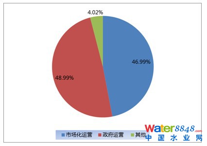 截止到2013年年底,我國采用市場化運營的城鎮(zhèn)污水處理廠占比47%,政府投資與運營的城鎮(zhèn)污水處理廠占比48.99%。我國近半城鎮(zhèn)污水處理廠市場化運作。