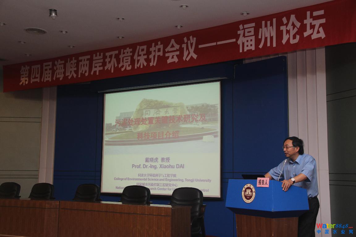 8月18日上午,第四屆海峽兩岸環(huán)境保護(hù)會議——福州論壇在福建師范大學(xué)邵逸夫樓學(xué)術(shù)報告廳順利召開。大會邀請海峽兩岸5位學(xué)者、專家做特約報告。專題報告會由由臺灣中山大學(xué)袁中新教授和廈門大學(xué)白敏冬教授主持。會上,同濟(jì)大學(xué)環(huán)境科學(xué)與工程學(xué)院院長,城市污染控制國家工程研究中心主任,中組部千人計劃國家特聘專家戴曉虎教授為大會做《污泥處理處置技術(shù)現(xiàn)狀與未來展望》專題報告。