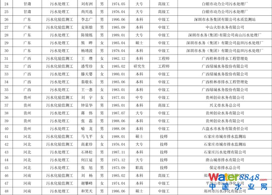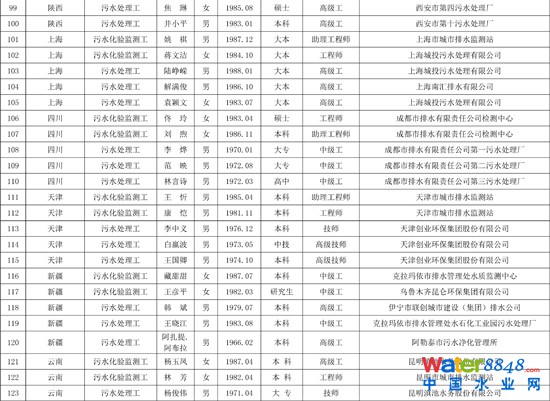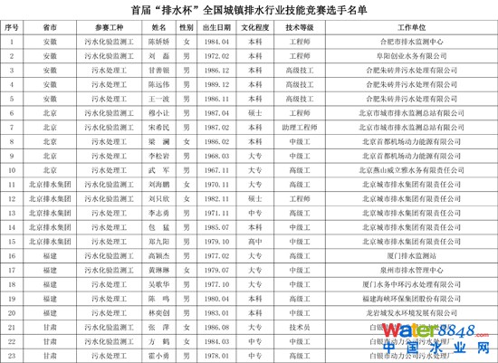 2014年中國技能大賽——首屆“排水杯”全國城鎮(zhèn)排水行業(yè)職業(yè)技能競賽決賽選手公示