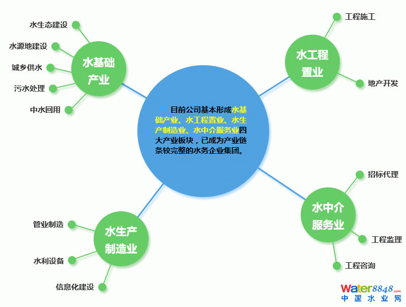 在省水利廳的正確領導下,公司本著“產(chǎn)權(quán)清晰、權(quán)責明確、政企分開、管理科學”的要求,梳理管理流程,健全監(jiān)管制度,推動公司步入科學、快速發(fā)展軌道。短短4年間,公司已發(fā)展為擁有72家控股子公司、2家參股公司、15家分公司、1家研究院,注冊資本18億元、員工近3000人的大型集團公司,基本形成了水基礎產(chǎn)業(yè)、水工程置業(yè)、水生產(chǎn)制造業(yè)、水中介服務業(yè)四大產(chǎn)業(yè)板塊,涉及水源地建設、城鄉(xiāng)供水、污水處理、中水回用、工程施工、管業(yè)制造、項目管理、工程咨詢、雨洪資源利用、水利風景區(qū)建設、水利信息化建設等涉水事務產(chǎn)業(yè)鏈。