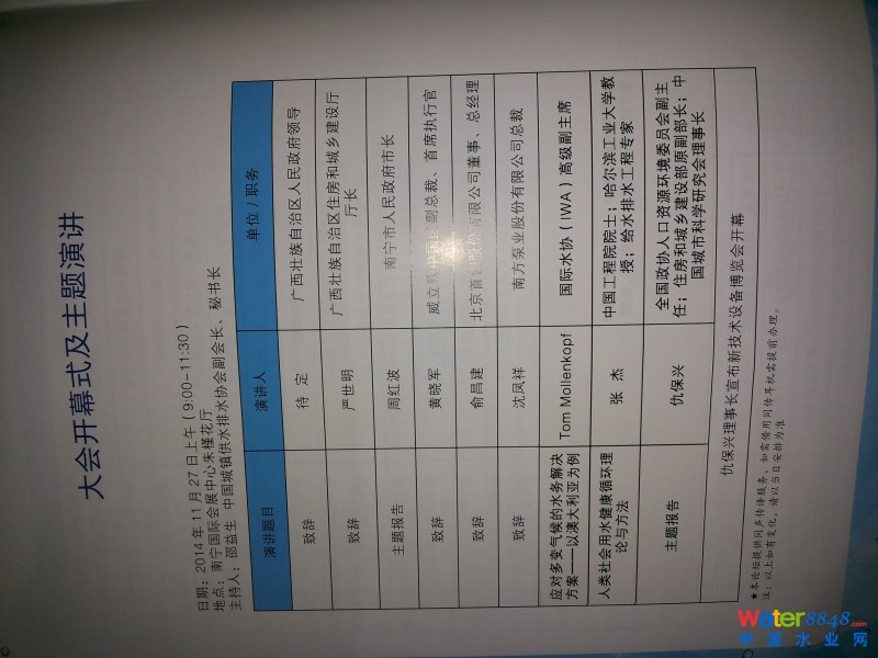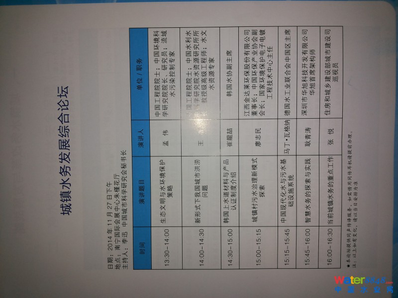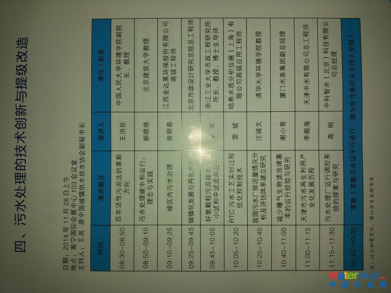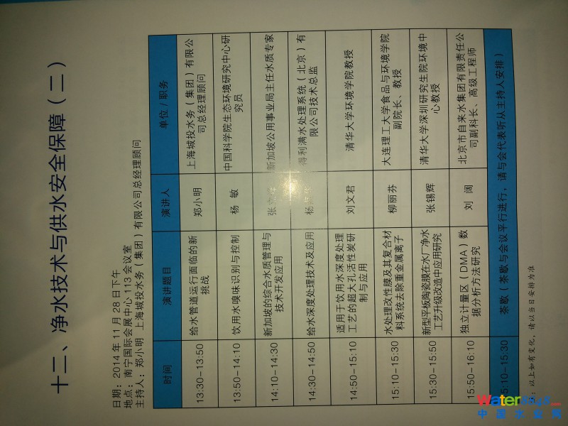 2014 水大會專家報告日程 (全) 中國給水排水戰(zhàn)略聯(lián)盟
