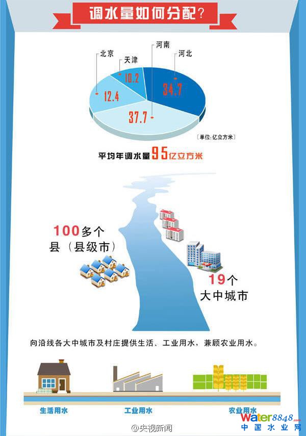【南水北調(diào)今天開閘通水】今天下午,長1432公里、歷時11年建設(shè)的南水北調(diào)中線正式通水。水源地丹江口水庫,水質(zhì)常年保持在國家Ⅱ類水質(zhì)以上,“雙封閉”渠道設(shè)計確保沿途水質(zhì)安全。通水后,每年可向北方輸送95億立方米的水量,相當(dāng)于1/6條黃河,基本緩解北方嚴(yán)重缺水局面。