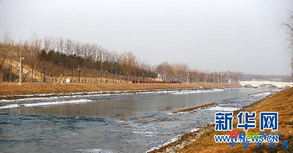 12月27日,開閘后江水在團城湖明渠破冰前進,準備輸送到北京市各個水廠。當日,南水北調中線一期工程總干渠終點團城湖明渠開閘放水,北京市南水北調工程正式通水。 新華社記者 殷剛 攝