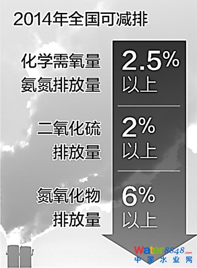 2014年,環(huán)保部著力推進(jìn)減排工程建設(shè)。截至2014年11月底,全國新增城鎮(zhèn)污水日處理能力900萬噸,1.9億千瓦燃煤機(jī)組實(shí)施脫硝和除塵改造,9576萬千瓦燃煤機(jī)組脫硫設(shè)施實(shí)施增容改造!墩ぷ鲌(bào)告》中的環(huán)保量化指標(biāo)全部完成。2014年,全國化學(xué)需氧量、氨氮排放量預(yù)計(jì)可減排2.5%以上,二氧化硫排放量預(yù)計(jì)可減排2%以上,氮氧化物預(yù)計(jì)可減排6%以上。
