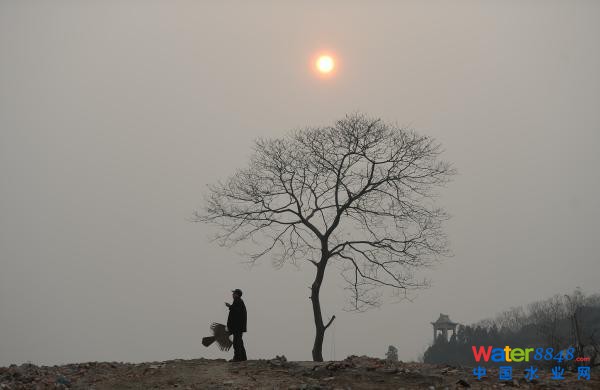 霧霾中, 在中國內(nèi)地, 一位居民正準備放飛風(fēng)箏。 CFP 圖