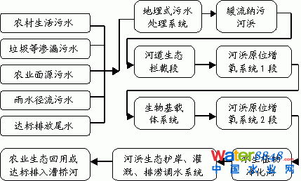 本工程總投資216萬元,本著高效、低耗、投資省、運(yùn)行費(fèi)用低、操作與運(yùn)行管理便捷、充分利用當(dāng)?shù)刭Y源的原則。工程建成每天可處理污水量830m3 (其中含農(nóng)業(yè)面源排水、地下水滲漏及企業(yè)達(dá)標(biāo)排放尾水等),采用緩流納污河浜原位增氧-動(dòng)態(tài)生態(tài)組合工藝處理農(nóng)村生活污水技術(shù)(ODBP)方案治理陳巷浜流域,系統(tǒng)治理后的水質(zhì)COD、總氮、總磷消減率達(dá)50%以上,污水經(jīng)處理后排入漕橋河。
