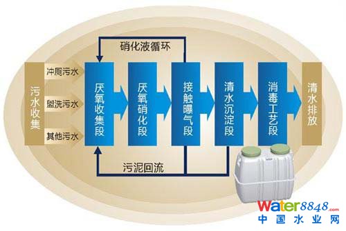 由于農(nóng)村污水排放集中度較差,相關(guān)管網(wǎng)配套設(shè)施較為落后,以往城市地區(qū)的管網(wǎng)+水廠式的污水處置方法并不適用于農(nóng)村,建設(shè)成本較高、來水量不穩(wěn)定且單體來水量小,同時當(dāng)?shù)卣c居民償付大規(guī)模管網(wǎng)與水廠建設(shè)成本的能力堪憂。因此,通過推廣小型、自動化設(shè)備,對污水進(jìn)行就地解決成為目前較為主流的處置思路。